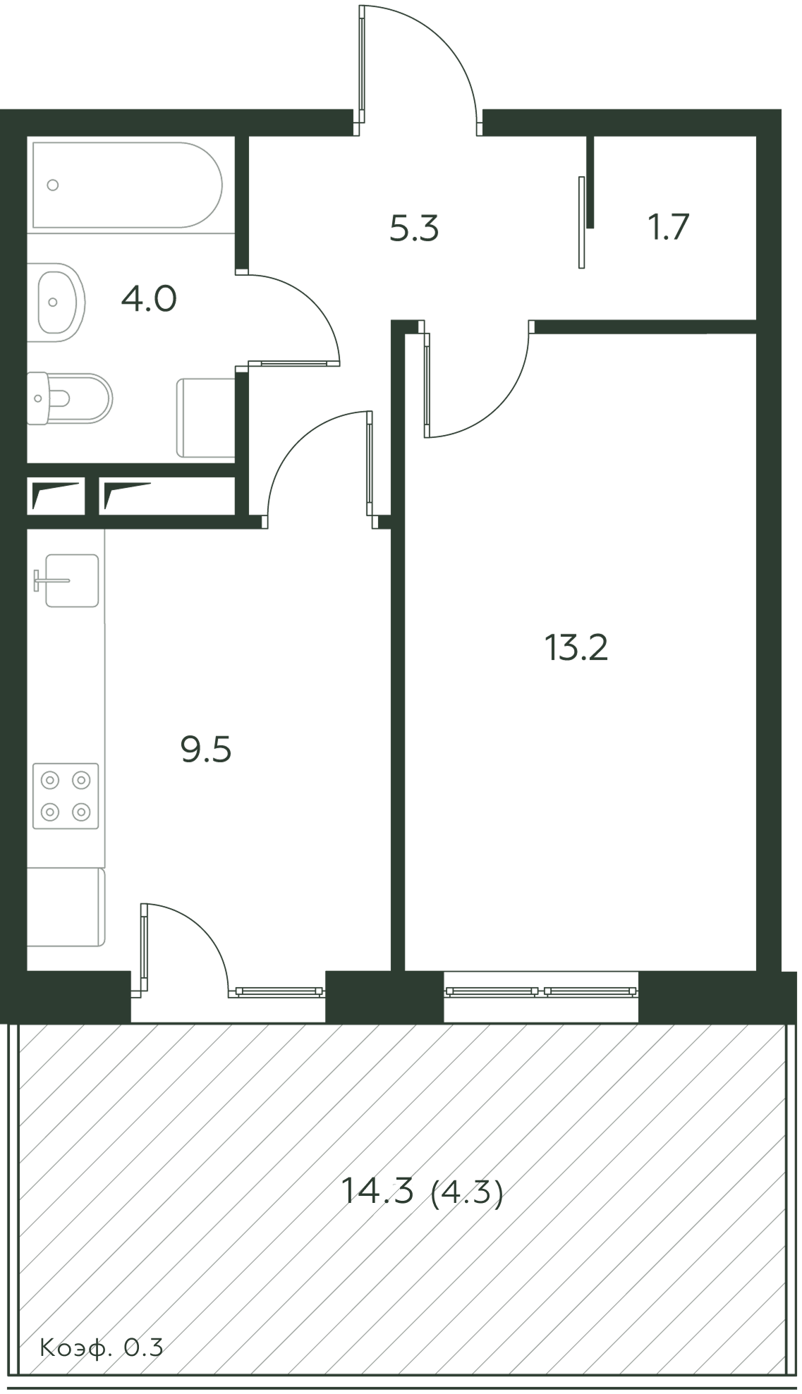 1 - комнатная квартира площадью 34.9 м², корпус 4 , этаж 3, квартира № 70