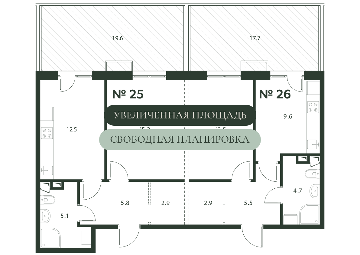 3 - комнатная квартира площадью 87.9 м², корпус 3 , этаж 1, квартира № 25