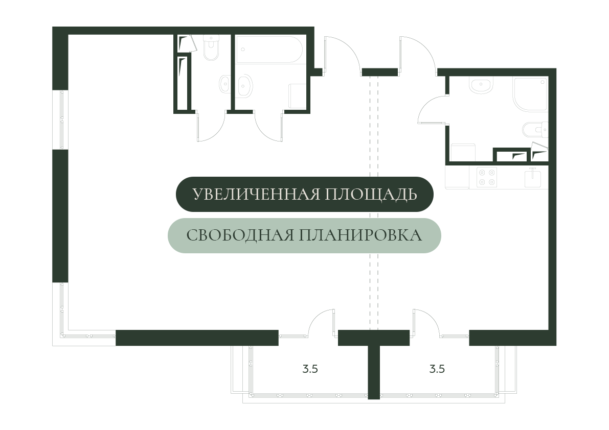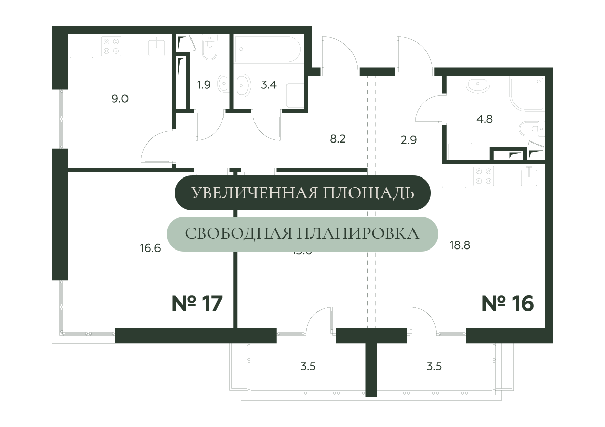 3 - комнатная квартира площадью 80.8 м², корпус 2 , этаж 3, квартира № 16